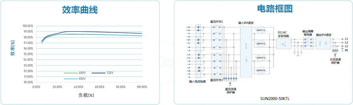 ● 最高效率99%,中國效率98.49%; ● 4路MPPT,有效降低組串失配影響。 | |