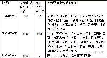 2016年全國光伏發(fā)電上網(wǎng)電價(jià)表單位:元/千瓦時(shí)(含稅)